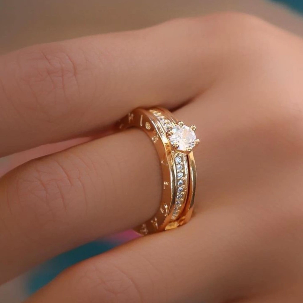Um anel elegante e versátil, banhado em 10 camadas de ouro 18k com acabamento em verniz alemão, que garante brilho e durabilidade.