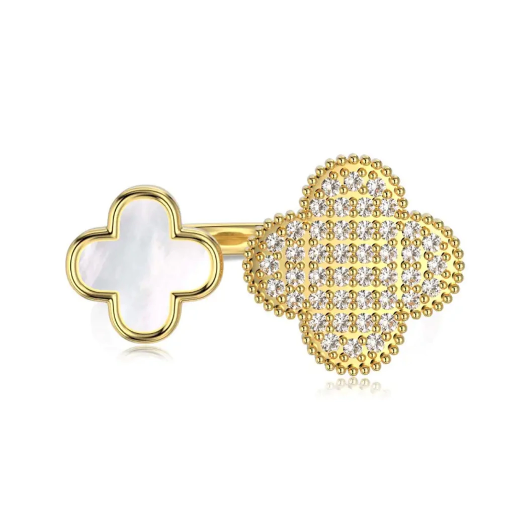 Anel Trevo Van Madrepérola Banhado a Ouro 18K