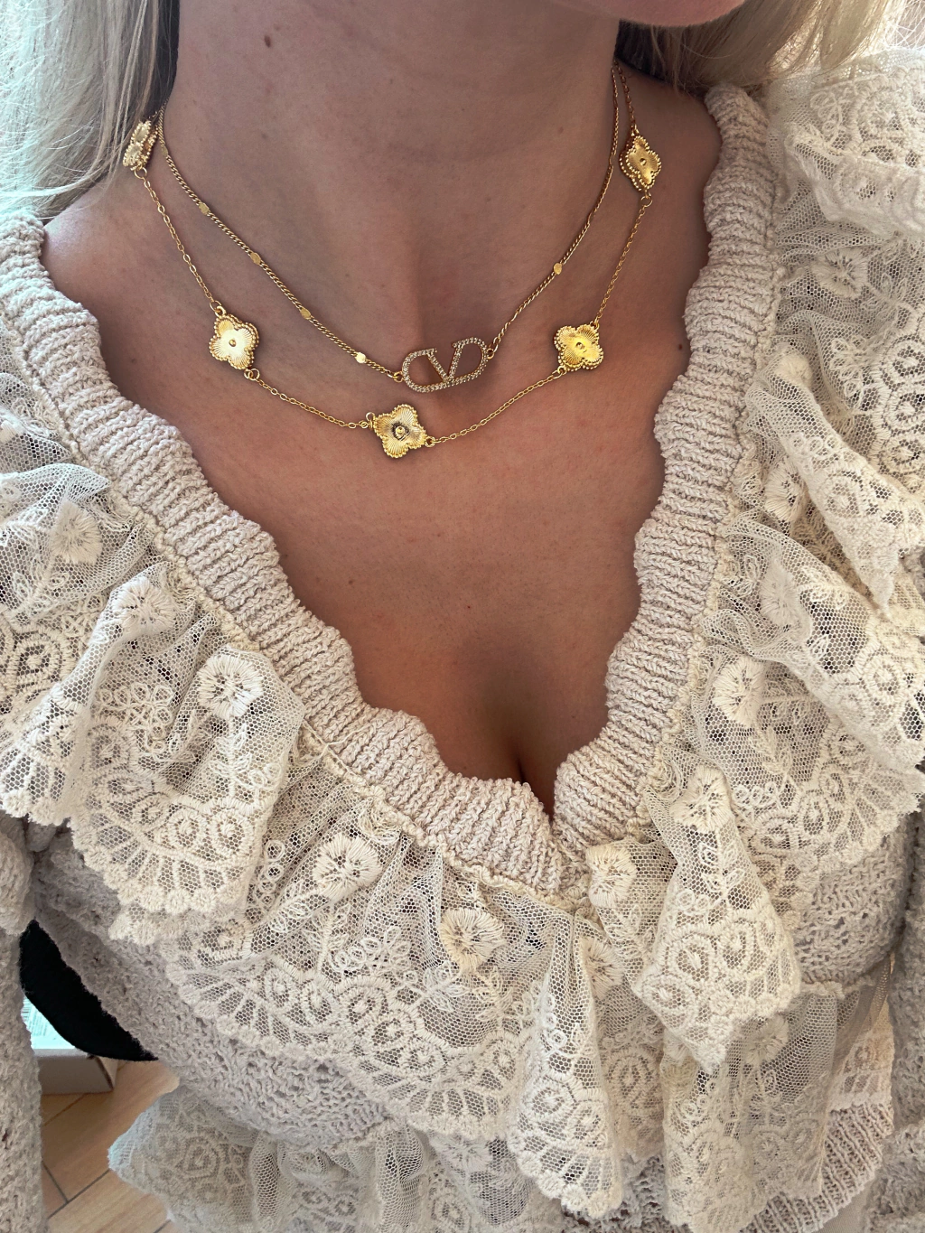 Colar com trevos dourados em banho ouro 18k, inspirado em alta joalheria, rico em detalhes, o modelo mais cobiçado da sua categoria.