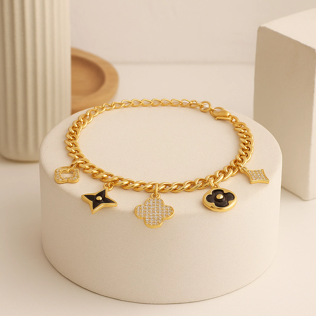 Pulseira Pingentes Trevos Banhada a Ouro 18K
